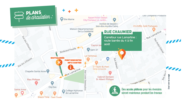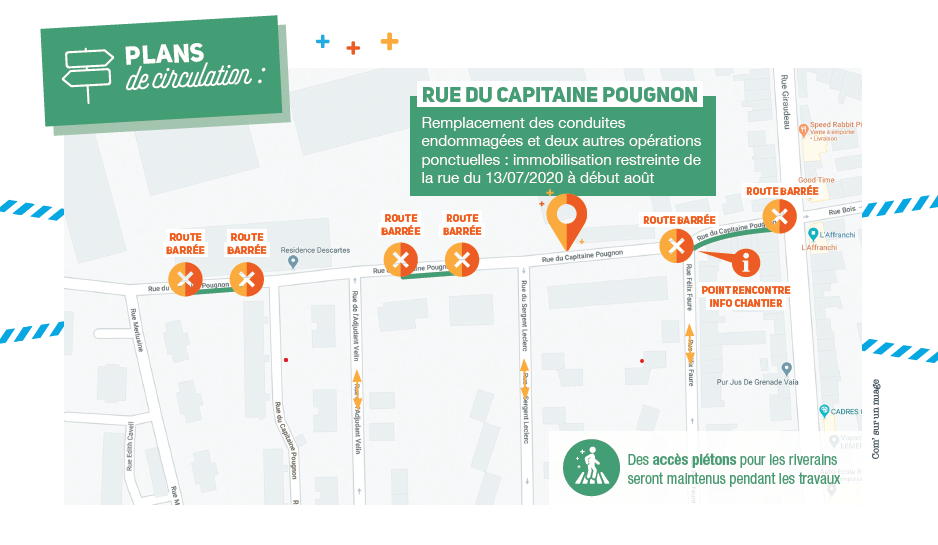 • Information riverains : des réunions d’information sont organisées en amont du lancement de chacun des chantiers, rue par rue. Durant toute la durée des travaux, un temps d'information hebdomadaire d'une heure est ouvert aux habitants qui pourront poser directement leurs questions aux techniciens qui interviennent sur le chantier