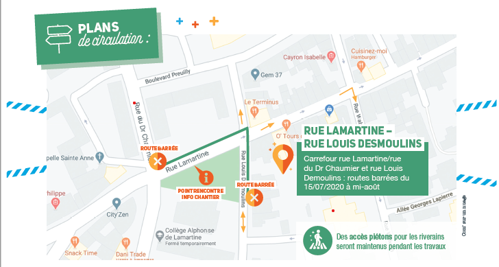 Rue Lamartine – Rue Louis Desmoulins : Carrefour rues Lamartine & Louis Desmoulins / Du 15 juillet à mi-août