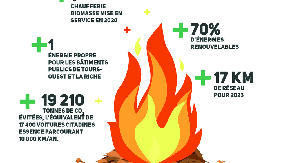 Le réseau de chaleur biomasse poursuit son déploiement à l'ouest de la métropole (Tours ouest et une partie de La Riche). Il sera alimenté par une chaufferie située dans le quartier du Menneton à Tours et mise en service en février 2020. L’énergie produite sera à 73% renouvelable et composée principalement de bois issu de forêts locales.