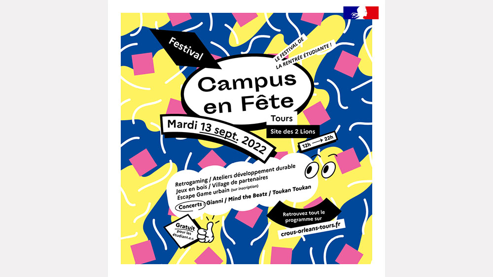 Le mardi 13 septembre, de 12h à 22h, Tours Métropole Val de Loire s'associe au Crous d'Orléans-Tours pour le festival "Campus en fête" sur le campus des 2 lions.