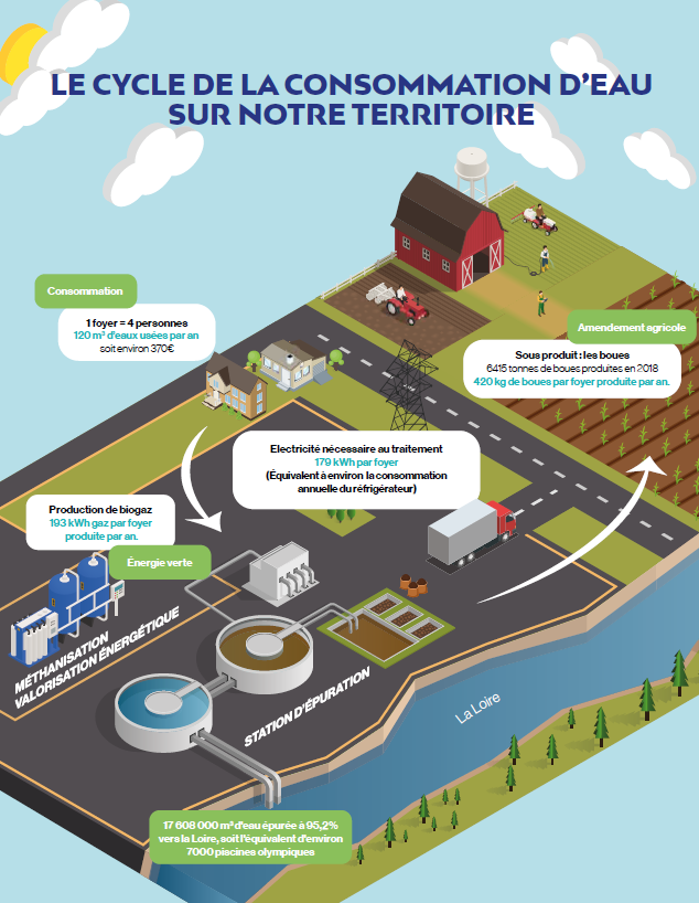 La Métropole est chargée de l’assainissement de l’eau et de la gestion de l’eau potable. Cette eau provient de deux sources distinctes : la première, la nappe du Cénomanien, est une source profonde, facile à extraire mais très longue à se recharger. Une goutte de pluie met 150 ans à atteindre cette nappe. La seconde, qui représente aujourd’hui les deux tiers des prélèvements, provient des nappes alluviales de la Loire et du Cher, des sources bien plus durables car l’eau s’y renouvelle beaucoup plus vite.