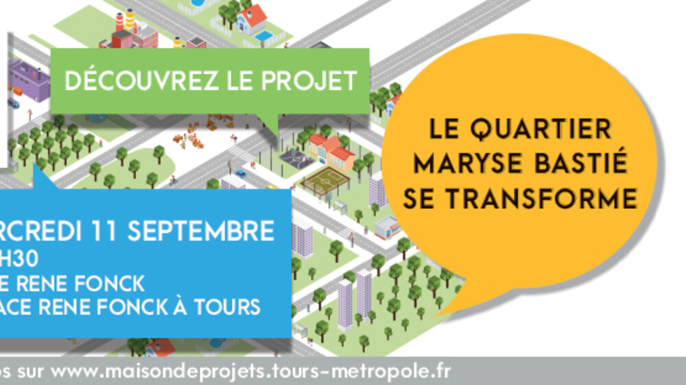 Entre 2020 et 2027 sera mis en œuvre un projet de transformation du quartier Maryse Bastié à Tours. Afin de présenter aux habitants l’ensemble des opérations, Tours Métropole Val de Loire, la Ville de Tours et leurs partenaires organisent une réunion publique le 11 septembre à 18h30, salle René Fonck à Tours.
