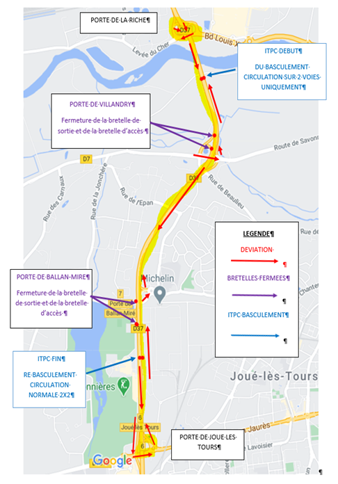 - L’accès aux sorties par les Portes de Villandry ou de Ballan-Miré sera dévié vers la sortie Porte de Joué-lès-Tours avec possibilité d’effectuer un demi-tour