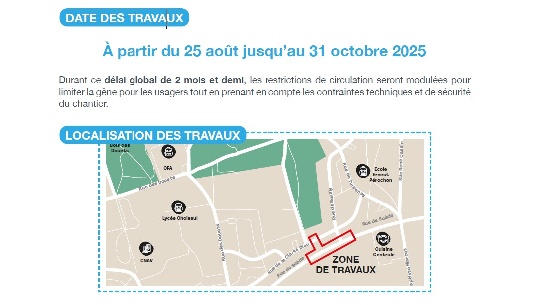Après la requalification des carrefours Douets et Marcet en 2024, Tours Métropole Val de Loire engage une seconde tranche de travaux concernant le carrefour Seuilly, l’arrêt Bus Cousinerie et la liaison piétonne vers le Parc de la Cousinerie entre la rue de Suède et la rue de la Clarté Dieu.